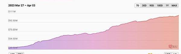 在$ARB空投结束后的一个合适契机,Zksync宣布推出Era主网,随之而来的是其TVL的迅速增长。据L2BEAT数据显示,截止4月2日,Era主网的TVL已经超过1亿美元。