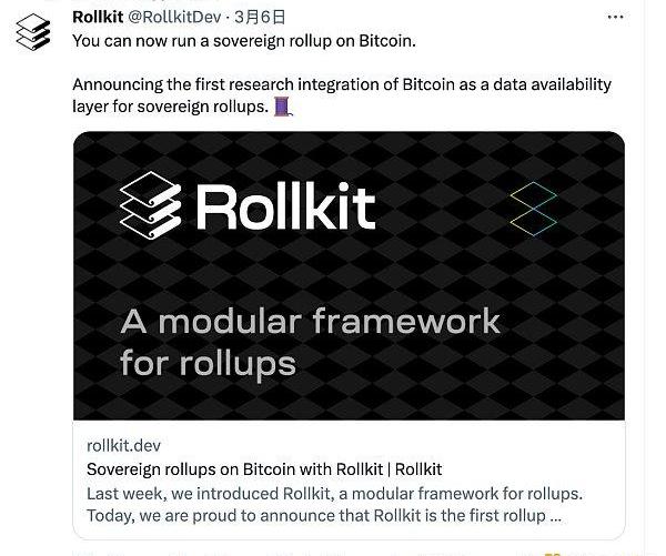 Rollkit是一个用于Rollup的模块化框架,开发人员可以在其中插入自定义执行层和数据可用性层。最初,Rollkit仅支持Celestia作为数据可用性和共识层选项。现在,由于Rollkit比特币数据可用性模块的早期研究实施,比特币也成为了一种选择。在这种情况下,主权Rollup管理自己的执行和结算,同时将共识和数据可用性的任务交给比特币网络。