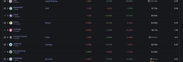 DeFi项目锁定资产前十排名及锁仓量数据来源:defillama