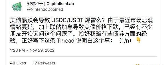 根据下方两条推文对BUSD/USDC/USDT底层资产的分析,可知综合安全性和流动性来看BUSD>USDC>USDT。不过USDT也有久经检验以及“不透明”带来的好处,而BUSD则成了美国监管机构的眼中钉。