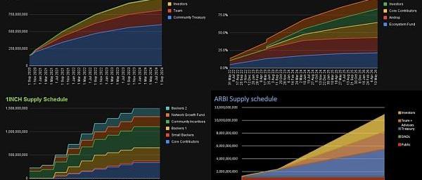 代币的初始分配和总分配只是其中一部分数据,而代币的解锁计划,则有助于了解代币的相对分发速率以及它们来自哪里。