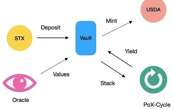 Arkadiko平台的主要应用是抵押资产铸造平台的USDA稳定币,模式与MakerDAO类似,用户在Arkadiko的Vault中存入STX,通过超额抵押的方式,铸造软锚定于美元的稳定币USDA,存入其中的STX还可以依靠Stacks的PoX机制获得收益。除此之外,用户还可以使用STX代币作为交易和支付费用的工具,并通过抵押STX代币来获得借款,Arkadiko的借贷利率较低,对用户而言非常有吸引力。另外,Arkadiko还提供了流动性池、稳定币交易和收益农场等功能,让用户可以参与到更多的DeFi产品和服务中。同时,Arkadiko的开发团队致力于提供更多的创新性DeFi产品和服务,为用户提供更好的金融体验。