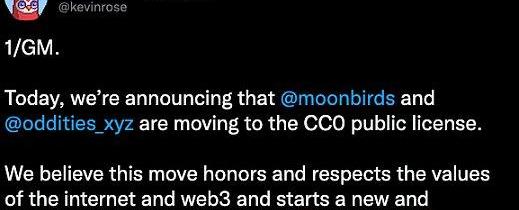 KevinRose推文宣布Moonbirds都将转为CC0许可