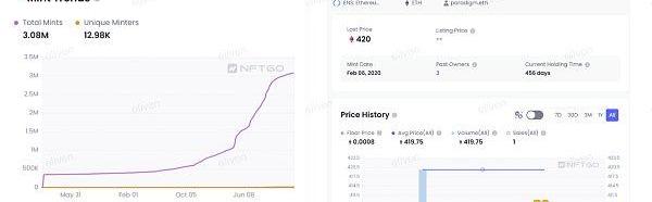 在下半年加密市场整体萎靡时,以ENS为代表的域名NFT却交易量大涨,并带动了市场上各类域名NFT的发行,它们所陈述的概念基本为:Web3域名不仅可以作为加密货币地址、还可以为用户提供Web3的身份名片。就这样大量数字域名、名牌域名被抢注,并在二级市场卖出高昂的价格,如paradigm.eth以420ETH成交。