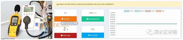 配置完矿池后 A10 Pro 矿机会自动调频开始挖矿,根据实测情况显示 A10 Pro 矿机修改完矿池后前10分钟左右不会显示算力数据,10分钟后算力开始慢慢调整上升,矿机功耗会随着算力的提升慢慢升高,矿机整体噪音水平低于 80 分贝,在 74-79 分贝间波动。