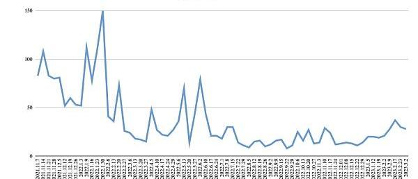 货币流动性趋紧。美国1月PCE核心物价通胀高于前值,3月16日加息50个基点的概率提升到30%。市场预计美联储将加息至5.5%,略高于之前的5.4%。美国或推迟到24年3月降息,而不是之前的23年12月。美元指数走高,对风险类资产价格施压。美股持续下跌,加密市场强于美股。