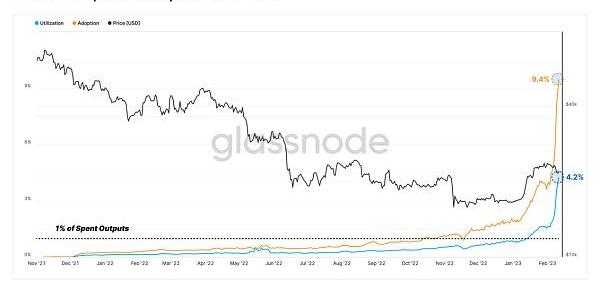 在这项新创新的影响下,Taproot的采用率和利用率分别飙升至9.4%和4.2%的历史新高。