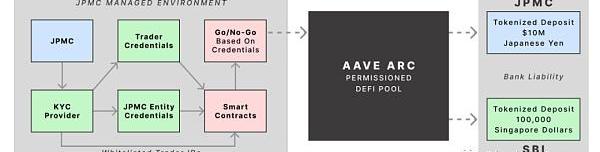 由于Aave是一个借贷协议,这些代币化存款的明确目的是被白名单和批准的交易方借走,由SBI提供代币化日元的抵押品,Onyx提供代币化新加坡元的抵押品。
