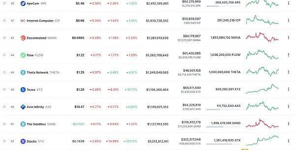 24小时NFT交易量、交易量前十项目数据来源:Coinmarketcap