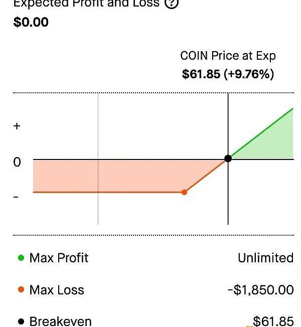 在COIN交易价格超过61.85美元之前,你的朋友不算获利,但在最初的1850美元投资之外没有任何风险敞口,COIN超过61.85美元的每一分钱都是真正的利润。