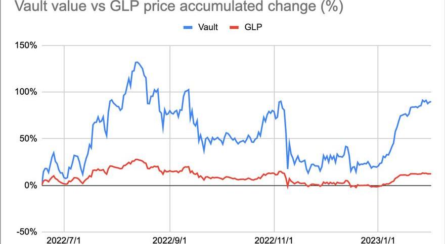 在表现方面,GLP的PnL为12.3%,Steadefi的金库以89.8%的PnL优于GLP,收益率高出7倍。