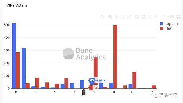 YFI中参与提案投票的用户,Source:DuneAnalytics