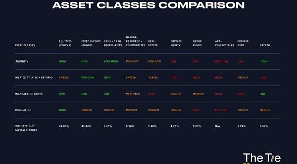 从根本上说,交换资产的交易成本是由基础设施的摩擦所造成的,如运营费用和中间商的佣金,这些摩擦有时是由复杂的法规和法律要求造成的。促进交易越具有挑战性,交换这些资产类别的交易成本就越高。