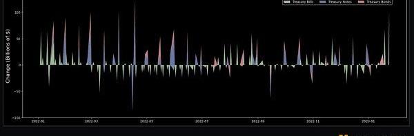 另一方面,当TGA增加时,这通常对资产不利。增加的债务发行将美元从系统中吸走,有效地挤出风险曲线下方的机会。然而,与TGA是增加还是减少一样重要的是发行的构成——换句话说,TGA是如何获得资金的。