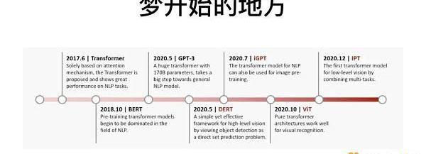 这篇论文发表之后,带来一个NLP的模型,叫Transformer,一经发布便快速屠榜,接着很快有了BERT模型,有了OpenAI的GPT-3模型。在视觉领域,有DERT模型,iGPT模型,以及上面提到的VisionTransformer。
