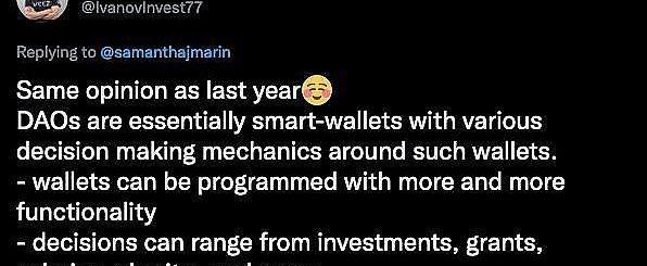 我在Twitter上询问是否有人对DAO的看法发生变化。以下是我最喜欢的一些答案:
