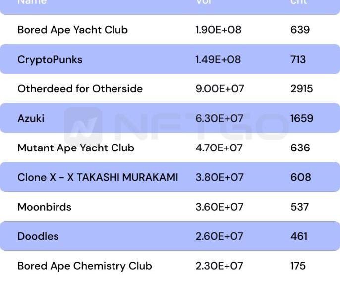 按出现频率来看,CryptoPunks在表中共计出现10次,BoredApeYachtClub出现8次,ArtBlocks出现4次,它们平均出现在各个月份,是每个月巨鲸都会优先考虑买入的NFT。