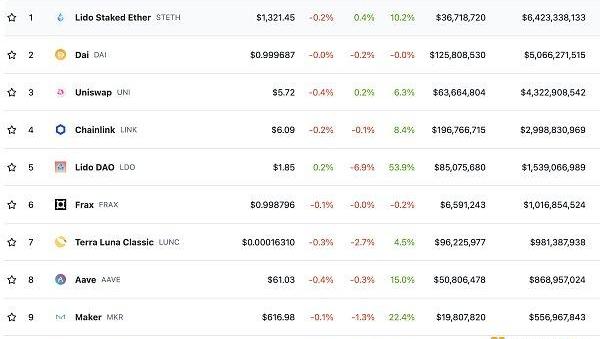 DeFi项目锁定资产前十排名及锁仓量数据来源:defillama