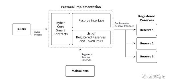 储备库是kyber网络中的流动性提供者,它们为兑换者们提供代币兑换。储备库可以是有丰富代币的个人,也可以是专业的做市商、项目团队、DEX(如Oasis和Uniswap)等。
