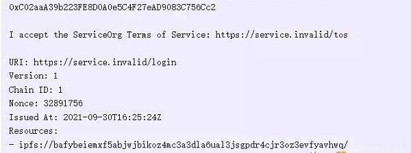 。该消息必须包含以太坊地址、请求签名的域、消息的版本、链标识符chain-id、用于范围的uri、依赖方可接受的nonce和发出的时间戳。