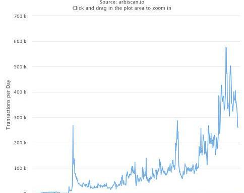 Arbitrum上每天的交易量现在也创下了历史新高,超过了它的竞争对手,达到每日57.5万笔交易。