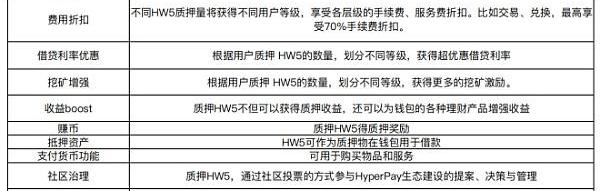 HW5是HyperPay生态系统的支柱。HW5采用PoP挖矿模式,即用户通过参与HyperPay钱包业务进行挖矿。包括HyperCard消费、充值、用户理财、借贷、交易等诸多用户行为。