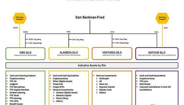 二、WRSSilo由债务人WestRealmShiresInc及其债务人和非债务人子公司组成,包括FTXUS、LedgerX、FTXUSDerivatives、FTXUSCapitalMarkets、FTXNFTs、EmbedFinancialTechnologiesInc以及其他业务子公司。上述公司全部都是由WestRealmShiresInc公司100%控股,并且全都在特拉华州组建——除了信托公司FTXVault,该公司在南达科他州成立。