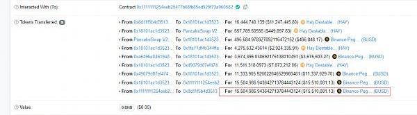 由于AnkrStaking:aBNBcToken项目遭受私钥泄露攻击,导致增发了大量的aBNBc代币,aBNBc和WBNB的交易对中,WBNB被掏空,WBNB价格升高。套利者首先使用10WBNB交换出超发后的大量aBNBc.之后将aBNBc交换为hBNB。以hBNB为抵押品在Helio_Money中进行借贷,借贷出约1644万HAY。之后将HAY交换为约1550万BUSD,价值接近1亿人民币。