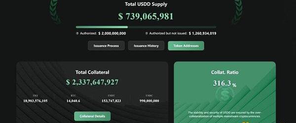 USDD仅由$TRX以1:1的比例铸造,并且仅由白名单会员铸造。但TronDAOReserve声称,USDD以293%的抵押比率得到其他加密资产的支持。