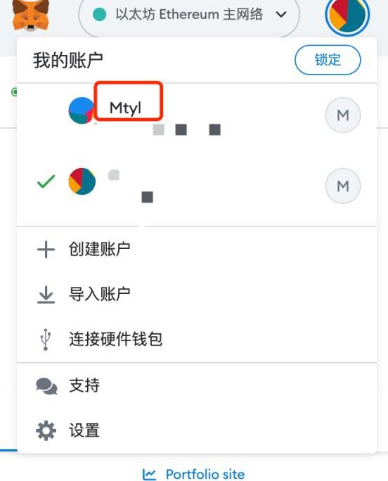 还是以Metamask为例,用户的每一个Metamask账号,都可以建立不同的子账户;而不同子账户在不同的链上,有不一样的地址。这个子账户管理就在浏览器插件的右上角上,如下图锁所示: