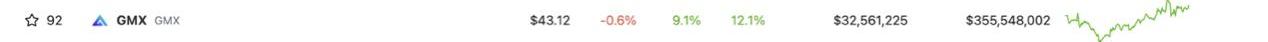 去中心化衍生品协议GMX的代币在过去一周上涨了12.1%。