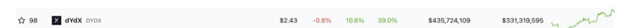 去中心化衍生品协议dydx的代币在过去一周上涨了39%。