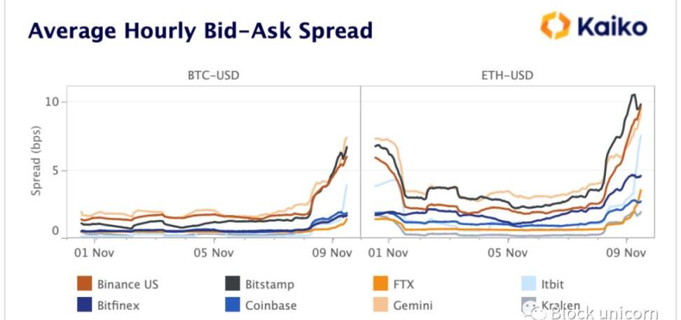 Alameda的破产可能已经影响到流动性,在过去的两天里,BTC-USD订单上的比特币数量从所有市场的约6000个下降到4000个。