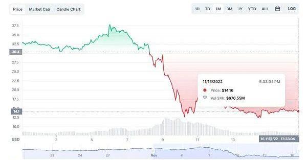 据DefiLlama数据显示,目前Solana总锁仓量已在近一周迅速缩水至3.2亿美元,较此前最高点下跌超90%,落后于BNBChain、Polygon、Avalanche等网络,在所有网络中排名第十二。即便没有FTX事件的影响,其锁仓量的跌幅也明显大于本轮熊市中其它一线公链的跌幅。而Sol的价格已经跌至14美元。