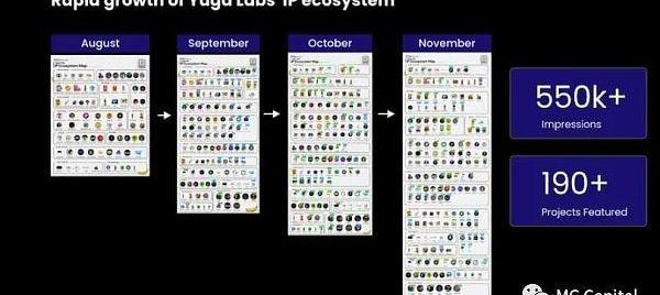 在ForjNetworkCEO?HarryLiu撰文的一篇叫做《YugaLabsIP帝国雄起:三个月版图扩张140%》的文章中写道“YugaLabs的IP生态系统正在快速增长,数量从八月份的80增加到现在的190以上。Web3IP增长推动着了更多的转型项目出现,这些积极的转型以及互操作性创新正在成为推动Web3大规模采用的结构变化的燃料。”