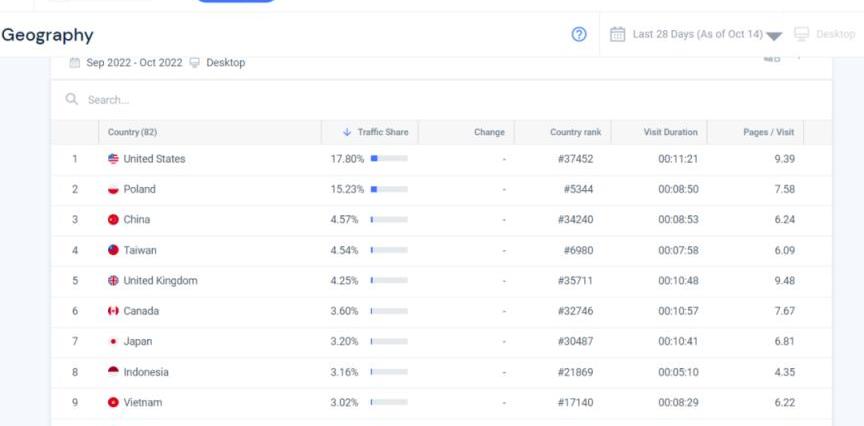 波兰是整个欧洲访问量最大的国家,这似乎与我们传统观念上的认知并不完全一致,也让人看到Web3在新兴国家的潜力。