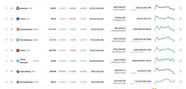 24小时NFT交易量、交易量前十项目数据来源:Coinmarketcap