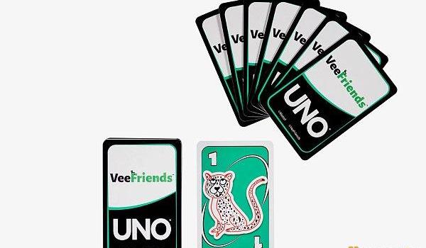 美泰的VeeFriendsUNO牌组具有VeeFriends的标志性角色和NFT特色(右图是对应的史诗稀有CharmingCheetah)。