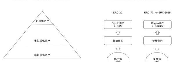 图中清晰表达出,无论是物理世界还是加密世界,所有资产可以分为匀质化、半匀质化和非匀质化三类。匀质化资产包括货币、股票、标准的期权期货衍生品、贵金属等;半匀质化资产包括各类金融票据、碳资产等半标准传统资产、积分卡、会员卡、礼品券等;非匀质化资产包括艺术品、收藏品、游戏道具、大部分实体物品、房产等。