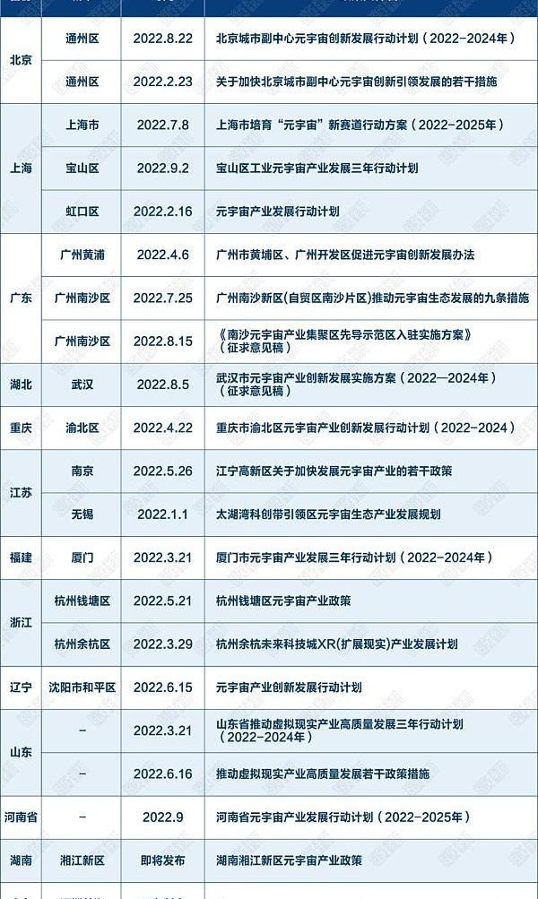 此后,全国各地纷纷出台元宇宙相关政策,抢占元宇宙产业发展先机。