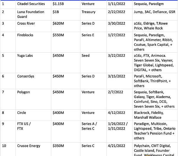 投资金额排行榜数据来源:MessariFundraisingDatabase