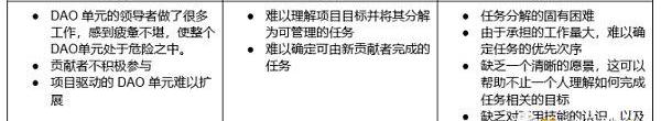 DAO单元内的领导力挑战包括完成任务、依赖少数人、治理结构和机制以及普遍缺乏明确性。