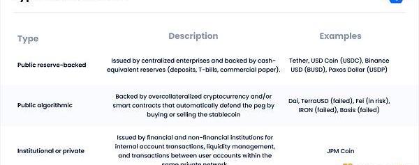 任何稳定币表现的最重要指标是资产将其与参考价值挂钩的程度。如上表所示,稳定币可以从不同的角度进行分类,每种类型都有自己的缺点。