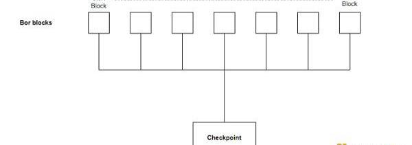 出块节点层,包括一组由Heimdall层上的验证者委员会定期选取的区块生产者,它们是一个验证者子集,负责将Polygon侧链上的交易聚合并生成区块。该层会定期向Heimdall层发布检查点,其中检查点代表Bor链上的一个快照,如下图所示。