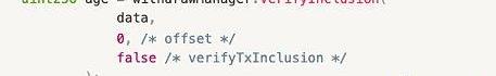 2、上文的源码解析可知,age是WithdrawManager.verifyInclusion()函数的返回值,该函数会首先校验withdraw交易的有效性,校验通过则生成对应的age。其中,校验的逻辑中使用了可控参数data解码出的值branchMaskBytes: