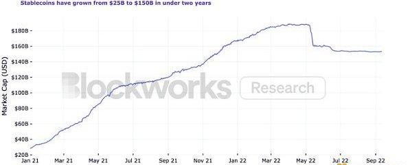 如今,所有稳定币的市值已经增长到1500亿美元以上。
