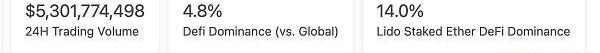 2.过去24小时去中心化交易所的交易量53.01亿美元
