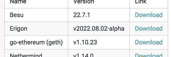 以下客户端版本支持以太坊主网的合并升级,注意,节点运营商必须同时运行执行层和共识层客户端,才能在合并期间和之后保持在网络上。