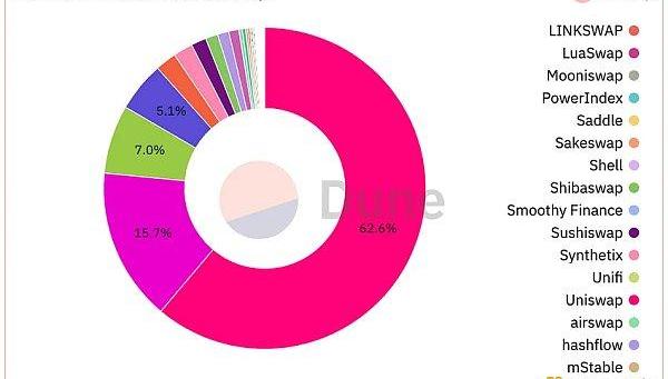 自UniswapV3推出以来,他们拥有大约7000亿美元的交易量,在所有Uniswap不同版本的交易中占到90%,此外以超过55亿美元的TVL占据DEX市场份额的绝大部分。