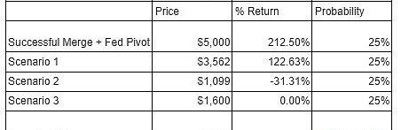 这是本文最重要的部分,因为即使我的论点是合理的,并且你相信它们,我也有很大的可能性是错误的。鉴于此,让我们快速浏览所有潜在结果组合的价格预测。